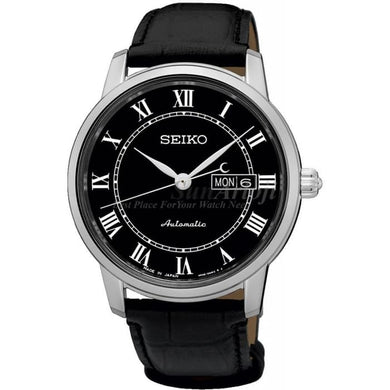 Seiko Presage SRP765J2 Automatic Day and Date Black Dial Black Leather Strap Men's Watch