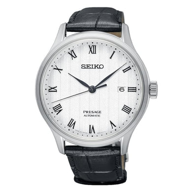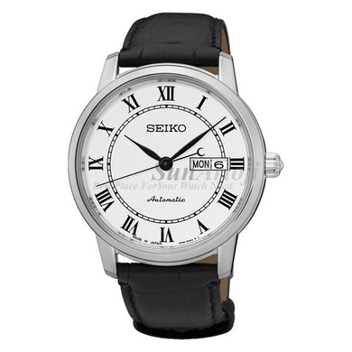 Seiko Presage SRP761J2 Automatic Day and Date White Dial Black Leather Strap Men's Watch