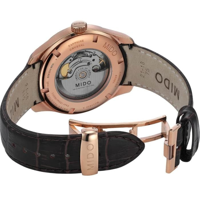 Model: M024.630.36.291.00 Manufacturers website: www.mido.ch Gender: Men Drive: Automatik Extras: Hour, Minute, Second, Date Housing: Steel Housing: 42,5 mm Clock Face Color: Brown Bracelet Material: Leather Bracelet Color: Brown Glas: Saphirglas Waterproof: 5 Bar