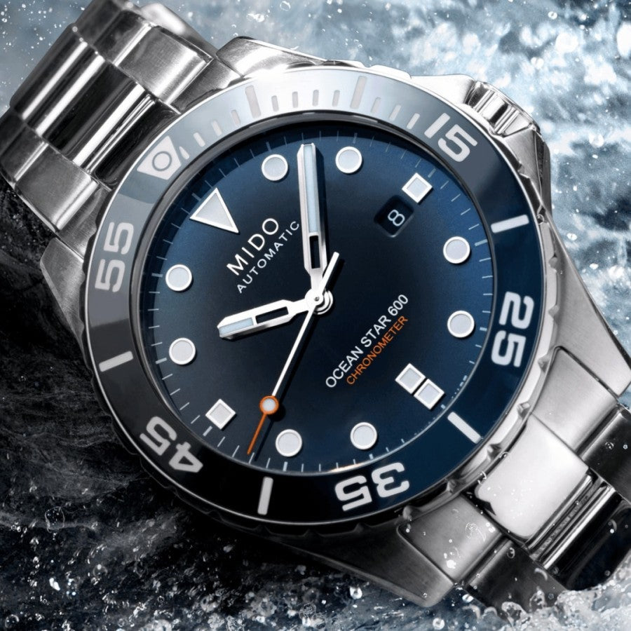 What's Inside Box :1x Mido M026.608.11.041.01 Ocean Star Diver 600 Chronometer Automatic Blue Dial Stainless Steel Strap , 1x Official Mido Warranty Card , 1x Mido Manual Book , 1x Mido Watch Box